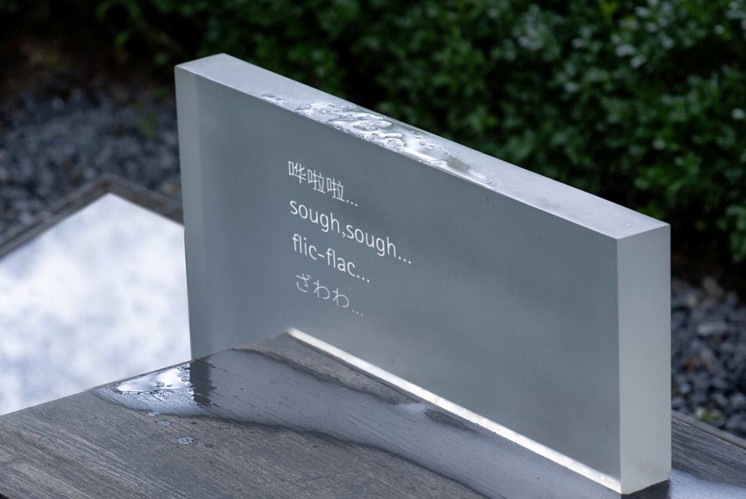 刻有不同語(yǔ)言擬聲詞的標(biāo)識(shí),更是將聽(tīng)覺(jué)轉(zhuǎn)化為視覺(jué)符號(hào),讓觀者在看到文字的瞬間,仿佛能聽(tīng)到 “嘩啦啦” 的水聲,為靜態(tài)的標(biāo)識(shí)注入動(dòng)態(tài)的生活韻律,使整個(gè)園區(qū)的標(biāo)識(shí)系統(tǒng),不只是冰冷的指示工具,更成為傳遞情感、營(yíng)造氛圍的藝術(shù)載體,讓人們?cè)诖┧蠡▓@的過(guò)程中,于不經(jīng)意間與這些標(biāo)識(shí)相遇、互動(dòng),感受設(shè)計(jì)帶來(lái)的美好體驗(yàn)。