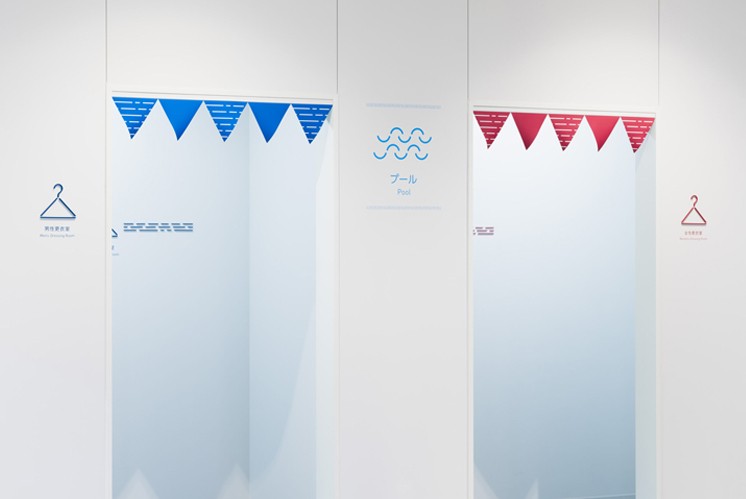 導(dǎo)視系統(tǒng)以象征水體清涼感的藍(lán)色為主色調(diào),精準(zhǔn)呼應(yīng)厚木市親切廣場(chǎng)依傍相模川等河流、水景豐沛的自然稟賦。藍(lán)色并非單調(diào)呈現(xiàn),在不同功能標(biāo)識(shí)里,它或作為主色營(yíng)造靜謐舒爽的氛圍,如摩托車停車場(chǎng)與工作室標(biāo)識(shí)中的藍(lán)色,貼合健康養(yǎng)生設(shè)施的調(diào)性;同時(shí)搭配紅色、綠色等輔助色,像衛(wèi)生間標(biāo)識(shí)里的紅、綠元素,既清晰劃分不同性別與特殊需求的功能區(qū)域,又與藍(lán)色主調(diào)形成和諧的色彩層次,整體為空間鋪陳出清爽且富有親和力的視覺基底。
