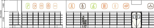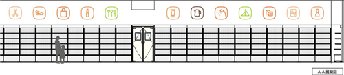 就商店的空間而言,大量的商品象形圖遍布店內(nèi)的墻體和柱體,通過這些向顧客展示店內(nèi)不同種類的商品。通過利用鮮艷而柔和的顏色,設(shè)計師為整個室內(nèi)空間營造出一種愉悅感。將橙色作為這個商店設(shè)計的主色調(diào),黃色和綠色作為輔助裝飾的顏色。