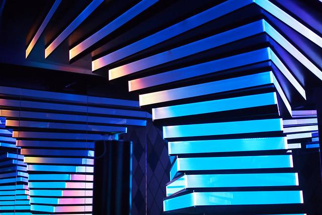 vivo Lab 概念店是vivo全球第一家集品牌創(chuàng)意和體驗于一身的互動空間。該空間以vivo blue為主色調,搭配大量的有色玻璃、金屬、鏡面和石材等材料,充滿科技感,十分具有辨識度。