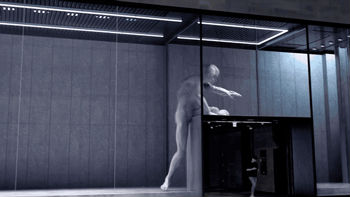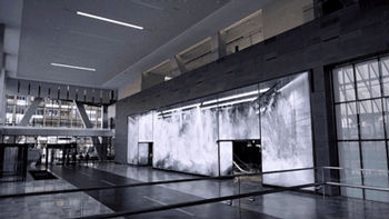 再來看看這塊屏幕有多神奇。一塊屏幕斜在建筑內(nèi),透過建筑外立面的玻璃你就能感受到不一樣的VR體驗(yàn)。