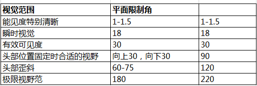 人體工程學(xué)研究表明,當(dāng)主體的位置固定時,人眼所能看到的空間大小是由視野范圍所決定的。在這個視野內(nèi),能見到的物體的清晰度是不一樣的,因此,在標(biāo)識系統(tǒng)設(shè)計的時候,應(yīng)當(dāng)將需要傳達(dá)的重要信息盡量安排在有利于接受的視野范圍內(nèi)。