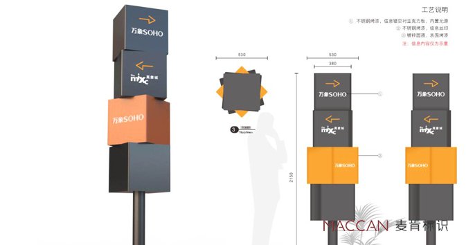 從圖標(biāo)、字體再到導(dǎo)視造型,現(xiàn)代簡(jiǎn)約不呆板,活潑又不夸張,使得導(dǎo)視系統(tǒng)能夠更好的融入華潤(rùn)萬象SOHO的空間環(huán)境,麥肯為贛州華潤(rùn)萬象SOHO創(chuàng)作了很棒的導(dǎo)視設(shè)計(jì)方案。