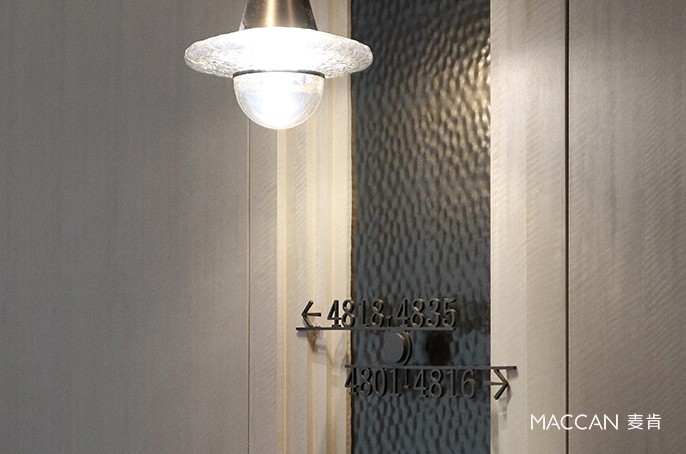 公區(qū)標識選取淺棕、深灰、古銅色為主色調(diào),三種色彩既呼應(yīng)廣府文化的沉穩(wěn)底蘊,又與酒店 “云端漫游” 的輕奢質(zhì)感相得益彰。房間門牌號標識尤為亮眼,采用4種樣式,不同樓層的門牌既延續(xù)整體創(chuàng)意邏輯,又融入細微視覺變化, “類似積木堆疊” 的創(chuàng)意鑲嵌進轉(zhuǎn)角區(qū)域,讓門牌號不再是單純的數(shù)字符號,更成為客房區(qū)域的藝術(shù)風(fēng)景,讓住客 “每一次抵達都有新鮮感”。