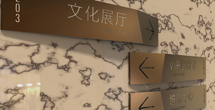 麥肯設(shè)計方案的出發(fā)點注重與空間環(huán)境的緊密結(jié)合度,在簡約的標識設(shè)計靈感下,充分考慮周大福大廈空間的屬性和使用人群,并結(jié)合室內(nèi)裝飾特點進行提取糅合,從而通過標識設(shè)計更好地展現(xiàn)出環(huán)境空間的裝飾性以及集團品牌系統(tǒng)的強大性和品質(zhì)感。